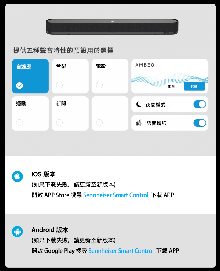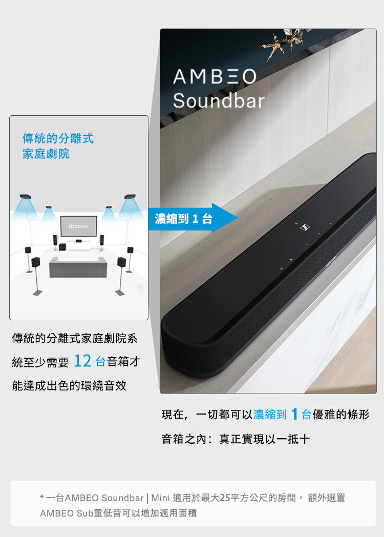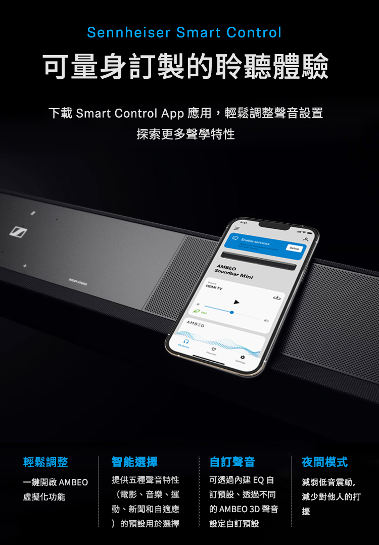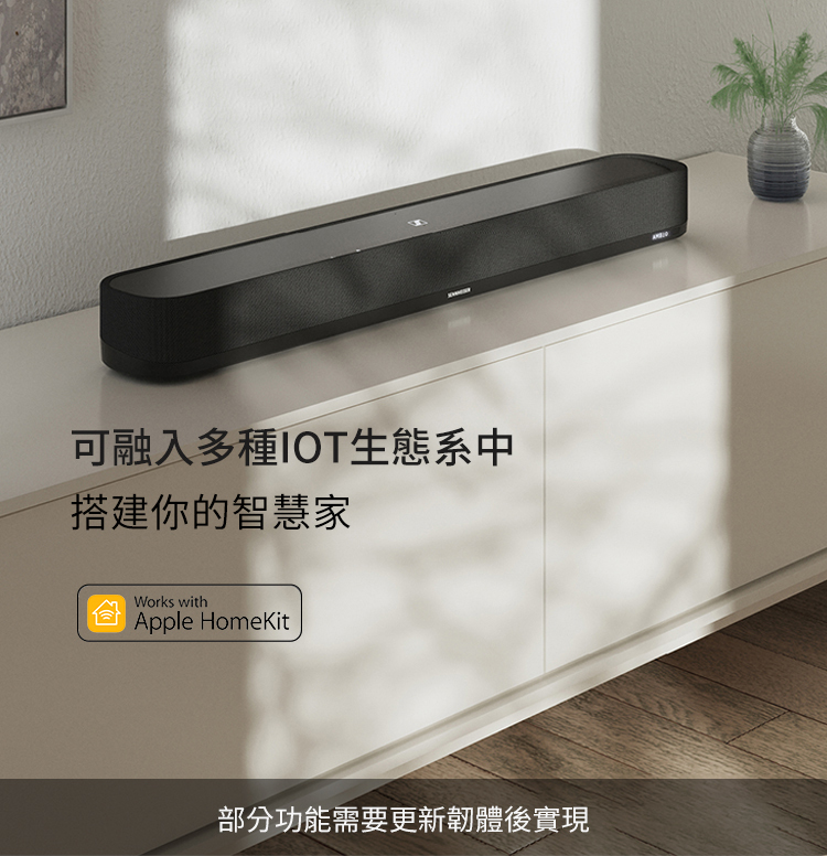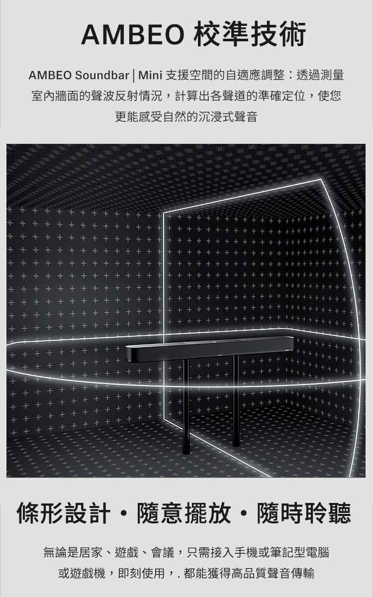 智能適應性:其自動校準算法可學習並適應您房間的聲學效果,創造完美的聲音、分配和定位,從而實現個性化的聆聽體驗
