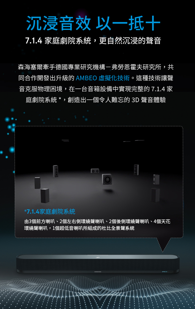 終極沉浸式音效:通過最先進的虛擬化和 3D 聲音編解碼器,帶來令人驚嘆的音頻體驗