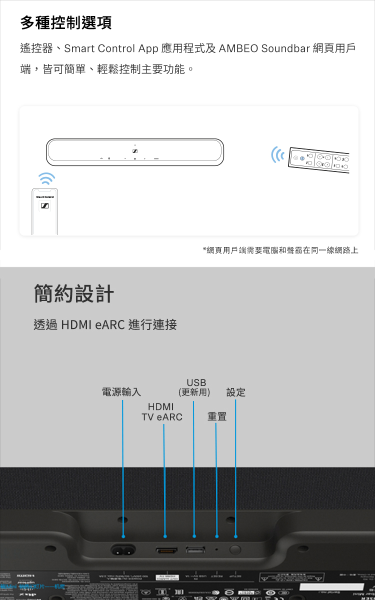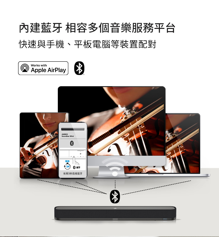 智能連接:通過藍芽® 和 Wi-Fi 實現無縫無線連接,支緩 Alexa built-in 和Chromecast built-in™,以及直觀控制和播放您喜愛的流媒體服務